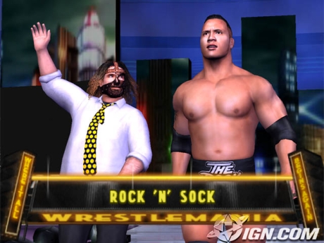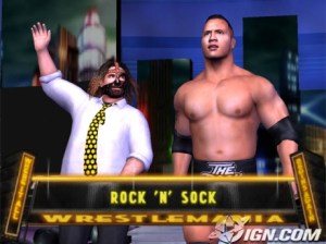 Even in video game form The Rock ignores Mankind’s lame high-five attempts.