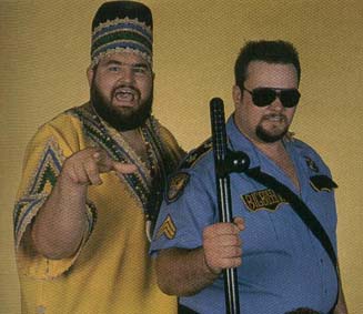 Big white men don’t come any whiter than the Big Boss Man and the One Man Gang. A Southern cop and a white-trash biker. But once the One Man Gang became a born-again brotha’, thanks to Slick, Akeem was born. Hey, if Steve Martin could pull it off in The Jerk, why not the One Man Gang? And thus, we got the Twin Towers tag team. Never Forget, indeed.