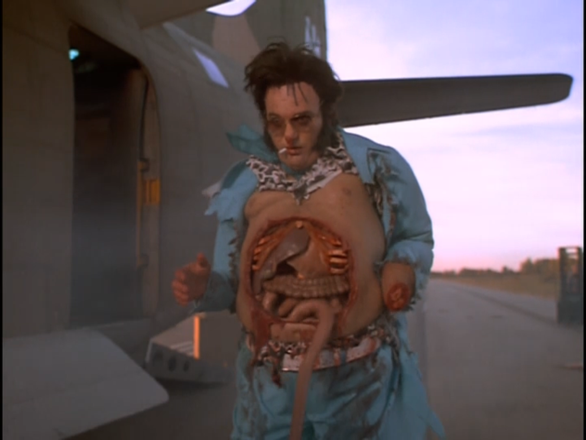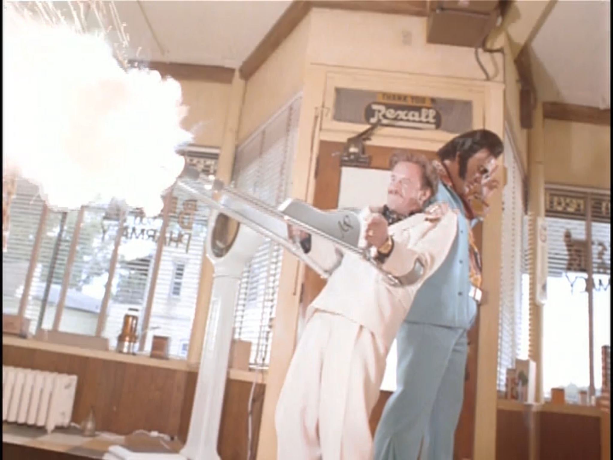 Edward not only tracks down Sticks with such ease, but also learns that Sticks’ chain of pharmacies distribute prescription drugs, and illegal drugs as well. In the movie’s final sequence of events, Edward arrives at a small airport where he’s been tipped off that Sticks is about to receive a large shipment of cocaine. After literally tying up one of the henchman into a human pretzel, he struggles to defeat the Elvis-loving Driver. However, a backfired attempt to inject Edward with a syringe filled with some drug cocktail, leaves the Driver in a still conscious coma in which Edward gets him to do his bidding. In one of the best scenes of the film, if not THE best scene, a hypnotized Driver walks over to kill his own boss and confidante, only to walk his dumbass into the propeller of the plane. Somehow, in all the mess, his intestines also get caught. The propeller continues twirling rapidly, tugging on his insides as they unravel in a bloody mess on the ground. Like I said, best scene in the movie.