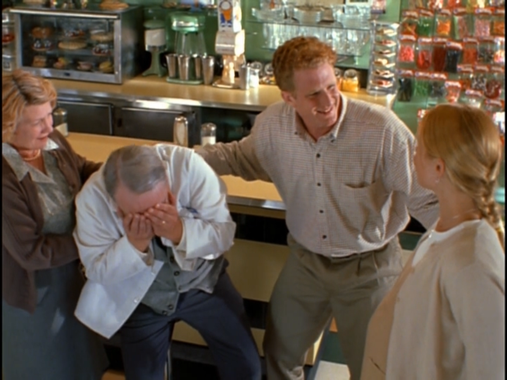 It felt like a movie that was trying too hard to be something that it wasn’t fully committing to in the first place. Which explains how this movie had fallen into the shadowy depths of obscurity. Edward Bliss Jr. is a chiropractor by day, and a wrestler by night, which is also the tagline for the movie. He had a falling out with his father because of his career choice as a chiropractor, mind you, and his refusal to follow in his father’s footsteps of being a pharmacist. This is all told in great detail in one of the longest flashbacks I’ve ever witnessed in a movie. For a minute there, I thought we were just going to stick with the flashback for the rest of the movie, but after 10-15 minutes, we finally jumped back to present time. And although this movie was released in 1999, present time in the film was a blurry haze that darted in and out of the 1950’s, complete with the jargon, cheesy bad guys, and hard-boiled detectives. Edward and his pregnant best gal are moving to the next town over so he can reconcile with his pops and open up his own business, right across the street from his dad’s pharmacy/soda fountain joint.