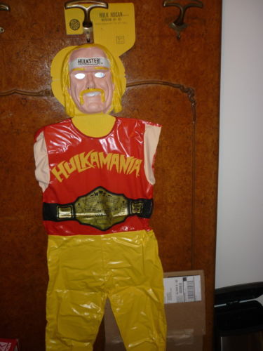 By the time this wrestling era rolled around Hulk Hogan’s career was in a resurgence and was once again relevant. What was he supposed to do, not make any extra money off of even more merchandise? Thanks to that entrepreneurial spirit, we got the creepiest Hulk Hogan costume to hit the market. With it’s unproportional gigantic mask, and lifeless black eyes, this was pretty much a costume made for an alien to disguise itself and fit in with the people of earth in order to study cultural rituals like Halloween.