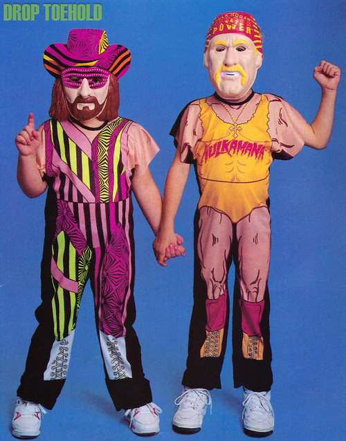 Despite being far removed from their Mega Powers days, has there ever been a cuter picture of Hulk Hogan and Randy Savage together than the one above? I dare you to find one. They should’ve made all their entrances holding hands, while Miss Elizabeth skipped out in front of them. Hogan was clearly into the transitional second stage of his WWE career here, but Halloween costumes for children were not. It’s hardly a step up from the even cheaper plastic Ben Cooper costumes that you’ll find at number one.