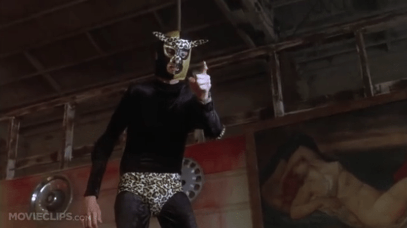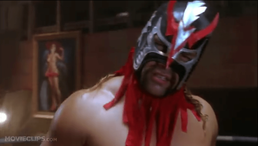 Instead he’s some guy named Cico Silva, who’s a steadily working sound mixer. The other luchador, as mentioned before, is the skinny guy from Road Trip, DJ Qualls, who apparently made his lucha costume out of the keepsake panties he pocketed after his first sexual conquest from said movie.