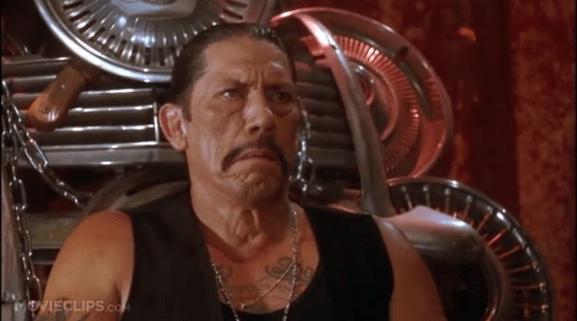 The wrestling scene in question finds Danny Trejo, as villainous Danny Trejo, sitting on a Game of Thrones style throne made of hubcaps, because what else is some Mexican drug lord going to sit on? They did give him a gold tooth to slightly alter his appearance. Apparently, he’s hosting some type of lucha competition in his lair which makes the Lucha Underground facility look like Arena Mexico.