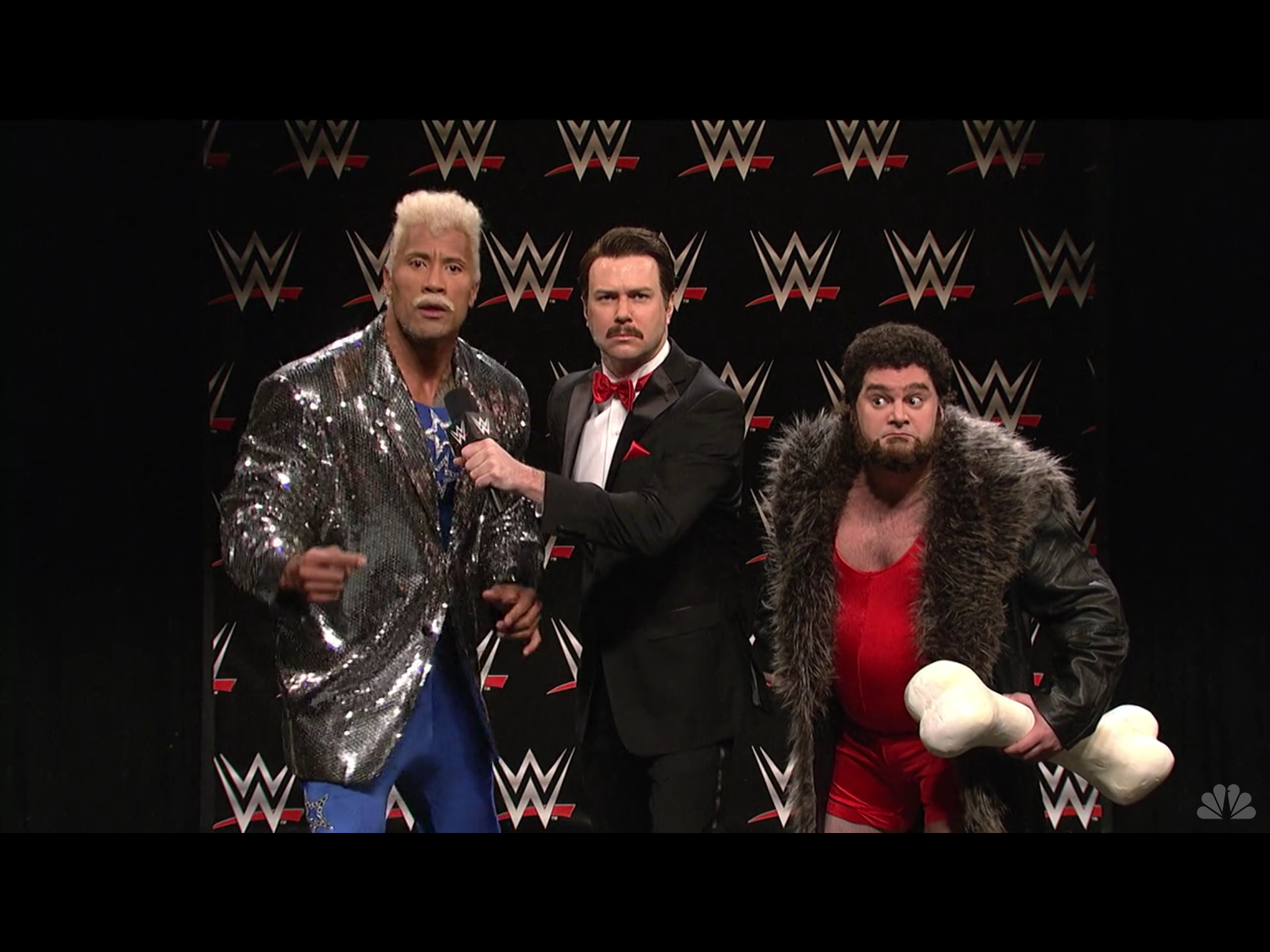 It was a nice little behind-the-scenes parody of wrestlers prepping for their biggest selling point: The Promo. Where they talk crap and hype the upcoming event. The Rock plays Koko WatchOut, a Rikishi-Koko B. Ware hybrid who is, deep down, a monster. Taran Killam does his best Mean Gene impression. And the always awesome, Bobby Moynihan plays the unsuspecting Trashyard Mutt. A potential offspring of Yapopotsky. As soon as the camera’s red light shines, Koko reveals the most intimate of Trashyard Mutt’s secrets in an effort to break him down psychologically.