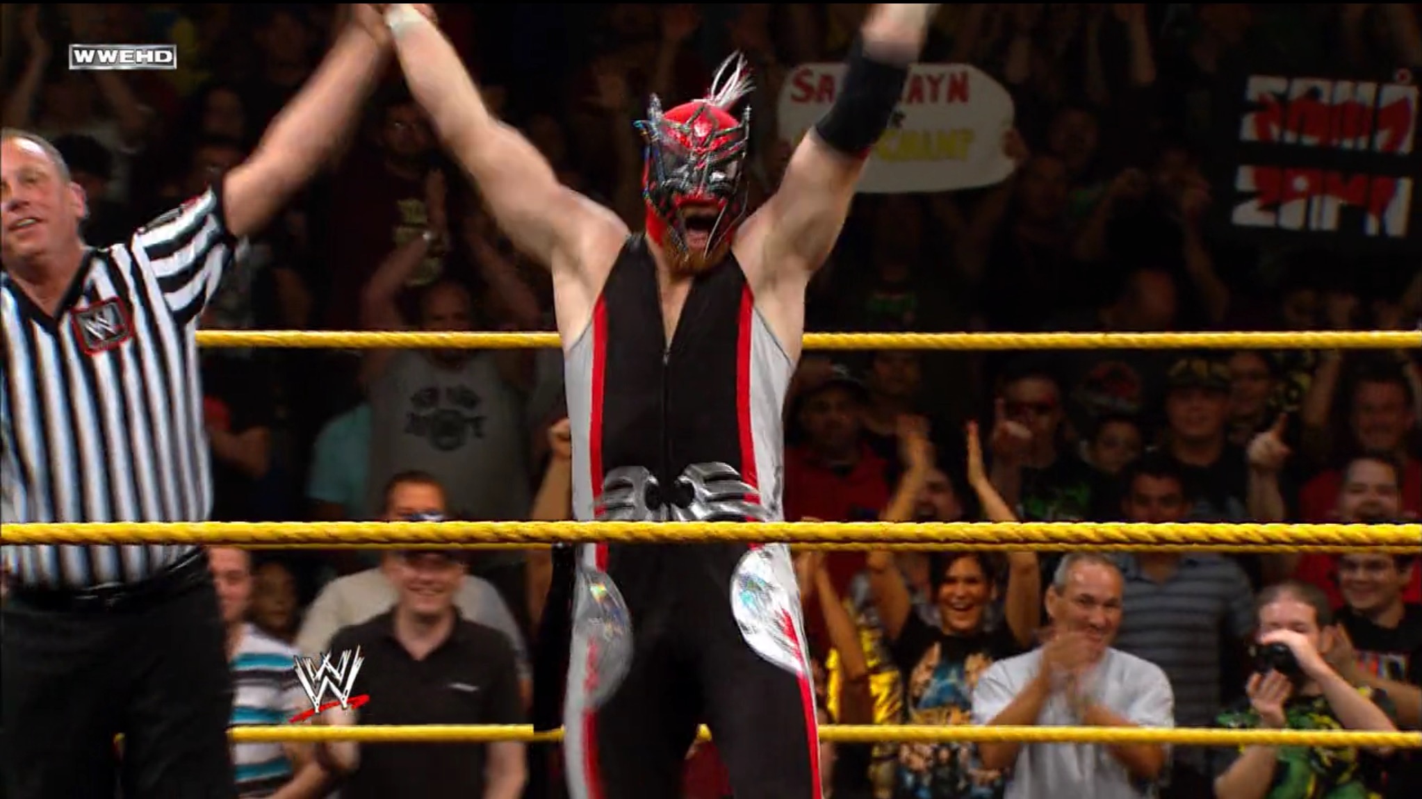 So this is the debut of El Local, before he got flabbier. Luckily, this was not Sami Zayn’s intended NXT/WWE gimmick. Although, to be honest, I wouldn’t have minded if the WWE kept Ricardo Rodriguez under the mask and had him team up with Kalisto, instead of goddamn Hunico. Anyway, Sami Zayn goes undercover in order to steal a win from Bo Dallas and get a shot at the NXT Title, which he was previously barred from competing for. You gotta love wrestling mask loopholes!