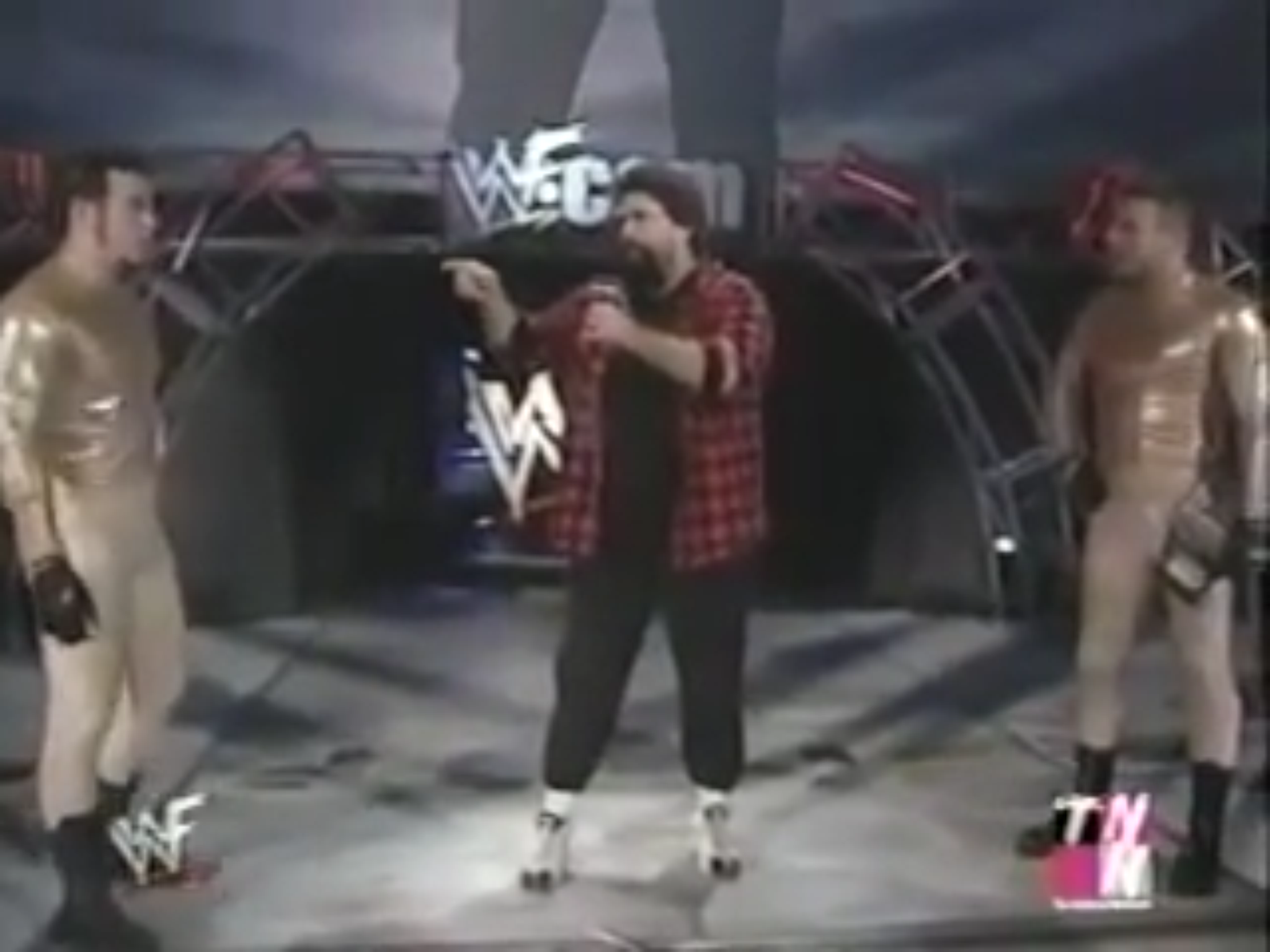 Out of all the things that WCW did terribly, no one can argue that they were pretty good at the surprise masquerade attack gimmick. And this is the best one. The mostly unassuming Dean Malenko, character-wise, was in the midst of one of the more popular feuds WCW had going on at that time, and he had Chris Jericho to thank for that. Jericho had outnumbered him in terms of moves in his repertoire, made fun his father, and gave Malenko ridiculous nicknames. After having lost the WCW Cruisweright Title to Jericho, and taking two months off of TV, Malenko returned at Slamboree ’98 disguised as Ciclope and entered the cruiserweight battle royal, whose main highlight up until the end was Jericho’s outstanding wrestler introductions. As the final two participants squared off, Juventud Guerrera shook Ciclope’s hand and eliminated himself granting WCW’s worst luchador a shot at the cruiserweight championship. Then we found out it was actually one of the greatest technical wrestlers of all time, Dean Malenko, who received the biggest crowd reaction of his career for giving Jericho his best comeuppance.