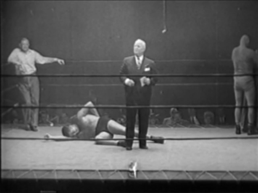 A guy named Mr. Peabody who represents the Wrestler’s Association, which would never actually exist in a million years, explains to Sandy if he confesses he’ll be barred from the ring forever. Naturally, Sandy owns up to the crime and The Devil is no longer able to wrestle. Cut to the last scene in which Sandy is sitting next to June ringside and in love, enjoying a match that we’ll never see. So, he either came clean to her about not being The Devil, or gave her some excuse as to why some other lady was introduced as his fiancée and not her. I’m pretty sure he went with the latter seeing as June would be more likely to forgive him for supposedly sleeping around, than for not being a wrestler. The gal’s muscle nuts, after all.