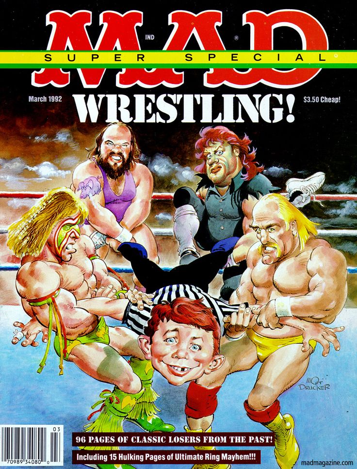 Before Cracked became a listicle site and a podcast, and you were more likely to try a MAD Magazine fold-in than you were to look through its Twitter feed, these humor magazines served a purpose to many a youth when it came to satirical skewering of the pop culture we were surrounded with at the time. As wrestling caught on with the masses so did its coverage on many national magazines, giving us some pretty awesome Cracked and MAD magazine cover illustrations.