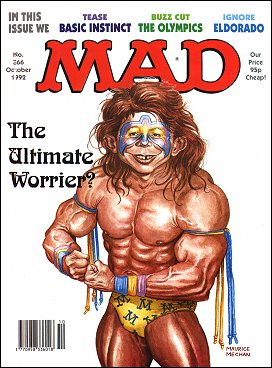 In the second of his third appearances for the magazine, Hogan brings along his Mega Powers brethren, Randy Savage, and the lovely Miss Elizabeth, in an homage to their famous finish at the first SummerSlam. Clearly, it was too much for Alfred E. Neuman to take. This would’ve been my number one pick if they hadn’t forgotten to include The Million Dollar Man. Mega Bucks 4 Life!