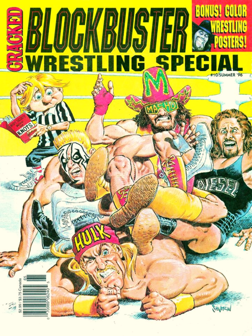Given the amount of WCW wrestlers showcased on the cover (despite Kevin Nash still be referred to as Diesel), it’s safe to say that Cracked was the WCW to MAD’s WWE. MAD wouldn’t even feature WCW wrestlers on their wrestling covers, but Cracked did, and for their Blockbuster Wrestling Special, no less.
