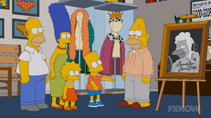 Any true pro wrestling fan would’ve been able to put two and two together, but the Simpsons are casual fans, at best, and stick with the “Grampa Simpson is gay” assumption. Homer’s not taking it so well, but Marge tries to cheer him up with the fact that old gay men are adorable. Which, I guess, we can all thank the movie Beginners and Sir Ian McKellen for. The Simpsons family decide to help Grampa come out of the closet and accept who he is, but after a potential casual encounter gone awry at a nearby park, Mr. Burns strolls by and notices Grampa wearing his old wrestling wig.