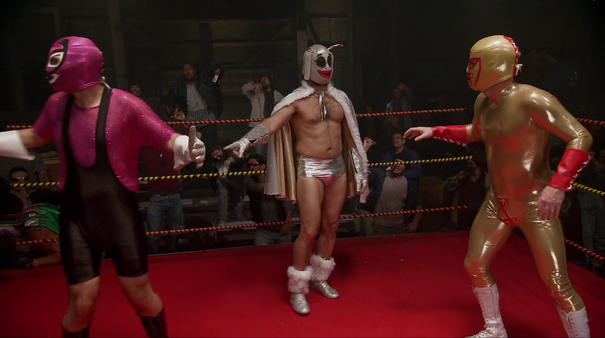 As with most episodes of The League, much of the improvisational jokes are mixed in with some actual storylines revolving around fantasy football. In this episode, Andre accompanies Kevin to his colonoscopy as part of a ruse to secure Kevin’s much better player in exchange for his shitty one. Kevin claims “trade rape,” despite Andre’s protest that Kevin’s decision was a lucid one, and was in no way affected by the anesthesia. In an ill-advised attempt to settle the dispute, they seek the wisdom of Ruxin’s crazy Mexican brother-in-law, Rafi, or as he’s lovingly referred to, El Cuñado/Bro-Lo. Rafi decides that the best way to put an end to this bickering is to kidnap both Kevin and Andre via chloroform rag to the face (a la Giant Gonzalez from WrestleMania IX), put them under lucha hoods, and set them up in a fight to the death in a pre-Lucha Underground, underground lucha event.