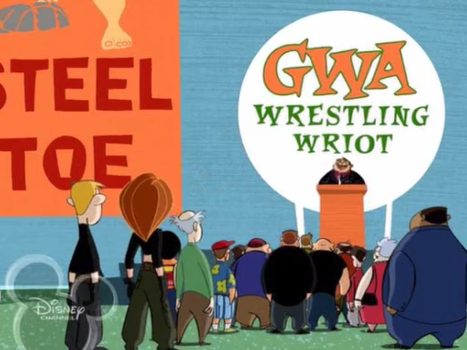 So Kim Possible is a teenager, who has to deal with being a teenager, and fight crime on the side. She’s got a crew to help her out, including Ron Stoppable, her best friend/goofy sidekick. Ron’s also voiced by Will Friedle, who adds another wrestling episode to his list of credits, after being manhandled by Vader as Eric Matthews in the Boy Meets World wrestling episodes. Rounding out the rest of the characters is a pet mole/rat thing named Rufus, and Wade, the prepubescent “Q” character who uses technology to help Kim out. They have a main villain they do battle with, but there’s no sense in getting into that, since he’s not even a part of this episode.