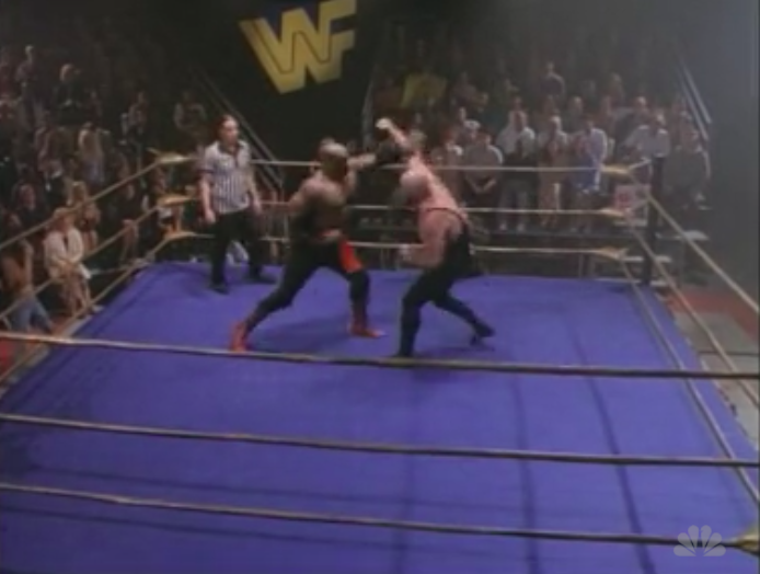 In this episode, like so many TV wrestling episodes, the main characters are taking in a wrestling show. Not just any wrestling show, but a WWF house show, despite looking like it’s an old AWF show, but with a bunch of no namers instead of ex-WWF wrestlers. Also, the ring doesn’t resemble anything close to any actual WWF ring, not even their rings from the 70’s. The only thing that gives it away that it’s a WWF show, is the huge WWF banner. Given that it’s 1996, this very well might’ve been one of their C-shows, that probably consisted of former Smoky Mountain wrestlers that the WWF had scooped up.