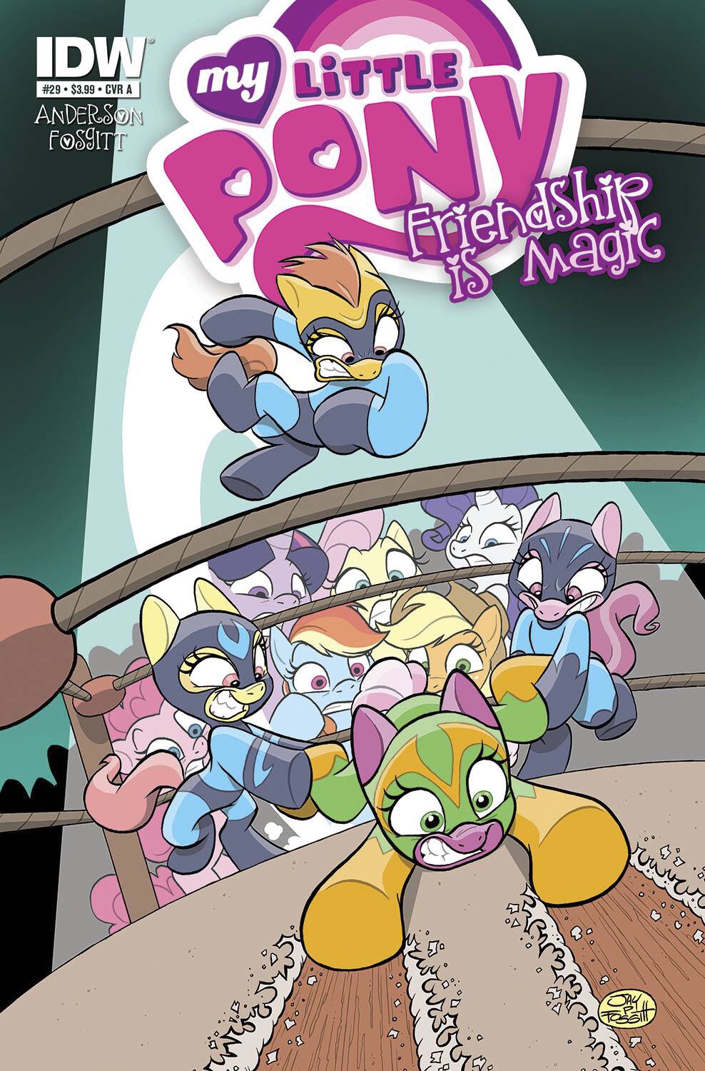 We’ll start with this one only to highlight a common problem with certain artists’ rendition of the squared circle: not knowing how many sets of ropes a wrestling ring has. In the Marvel post of wrestling comic book covers, we saw that an extra set was added, essentially making it a boxing ring. Here, you’ll see there’s only two. Maybe it’s a height thing, since these are little ponies. Also, are bronies that are into wrestling called jabronies? Has this been a cosplay thing at comic conventions? If not, someone is definitely lagging.