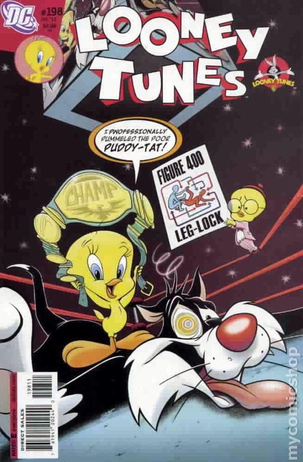 Was there every any doubt that Tweety Bird would come out on top in a battle between him and Sylvester? Luckily, Roman Reigns was only lifting lines from Sylvester and not studying his wrestling technique. Granted, it looks like Tweety had some help from Egghead Jr., who’s invented a figure four that far exceeds Charlotte Flair’s Figure 8 Leg Lock. Instead of a faceless crowd, we get camera flashes which is a nice creative touch. The only thing that could’ve made this better was if this cover included Looney Tunes and Merrie Melodies’ favorite wrestler, The Crusher.