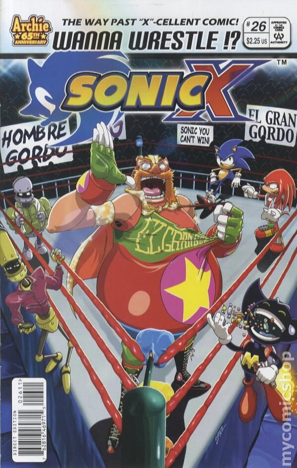 In this Sonic the Hedgehog comic book series, Dr. Robotnik is a luchador who goes by the name El Gran Gordo, a.k.a. The Grand Fatty. And he is super over with the crowd, as you can tell by the floating signs. It also looks like he’s got the crew of Mystery Science Theater 3000 as his cornermen, but Sonic doesn’t seem too phased by it considering he has Knuckles by his side. They’re also wrestling in the best looking ring you’re going to find on this list.