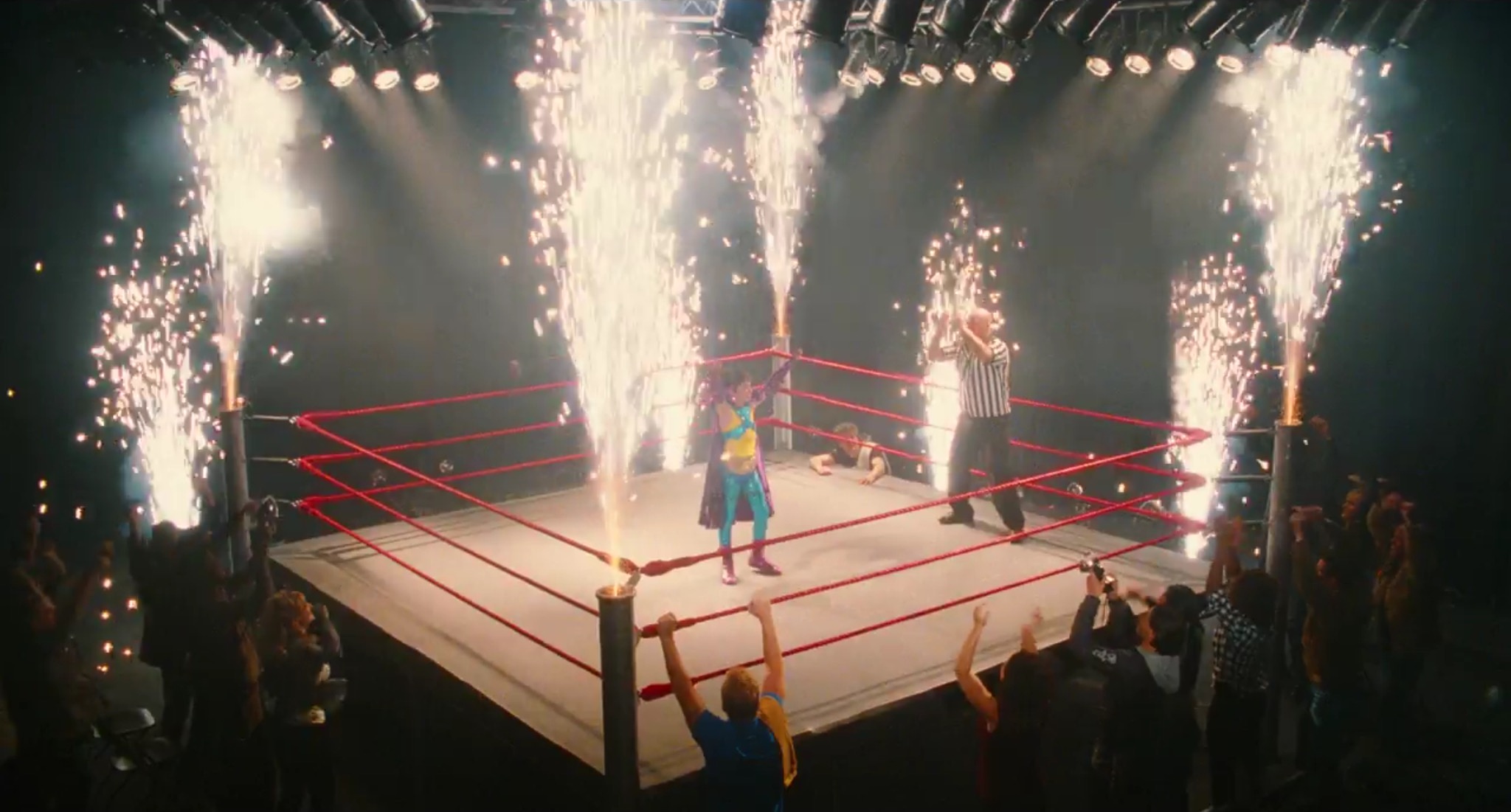 Then he calls out another trademark finishing move: The Vader Bomb. In this movie, a Vader Bomb is gorilla press slamming your opponent out of the ring. If anything, what Greg refers to as the Tombstone Piledriver is actually closer to what the real Vader Bomb is. This all ends with pyro and the audience chanting “Greg!” Despite Greg never officially beating his opponent.